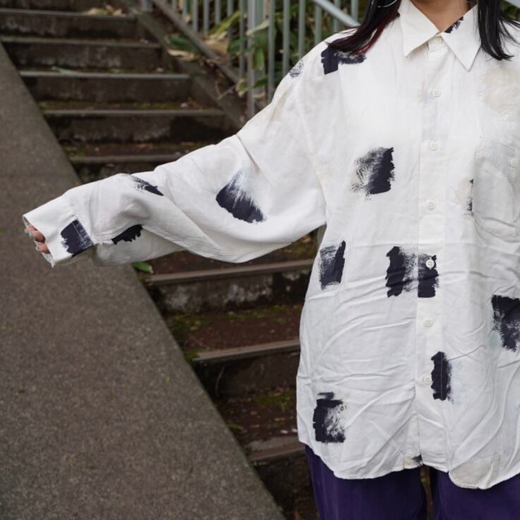 BRUSHED LS SHIRT 白シャツ 白黒 古着シャツ 長袖シャツ モノトーン ユーロ古着