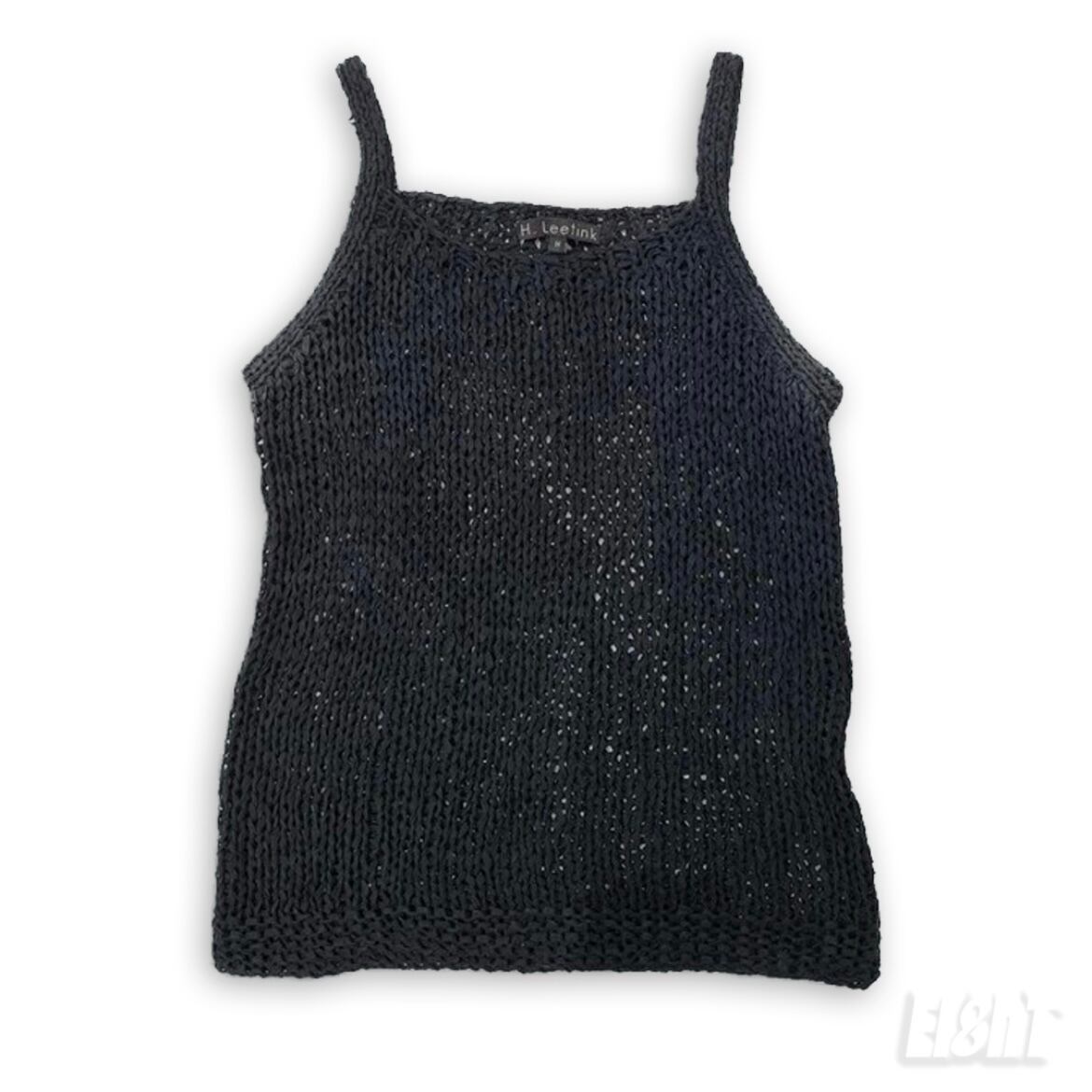 ブラックニットキャミソール。素材は表記なしですが、おそらくコットン×レーヨン。夏素材です。
