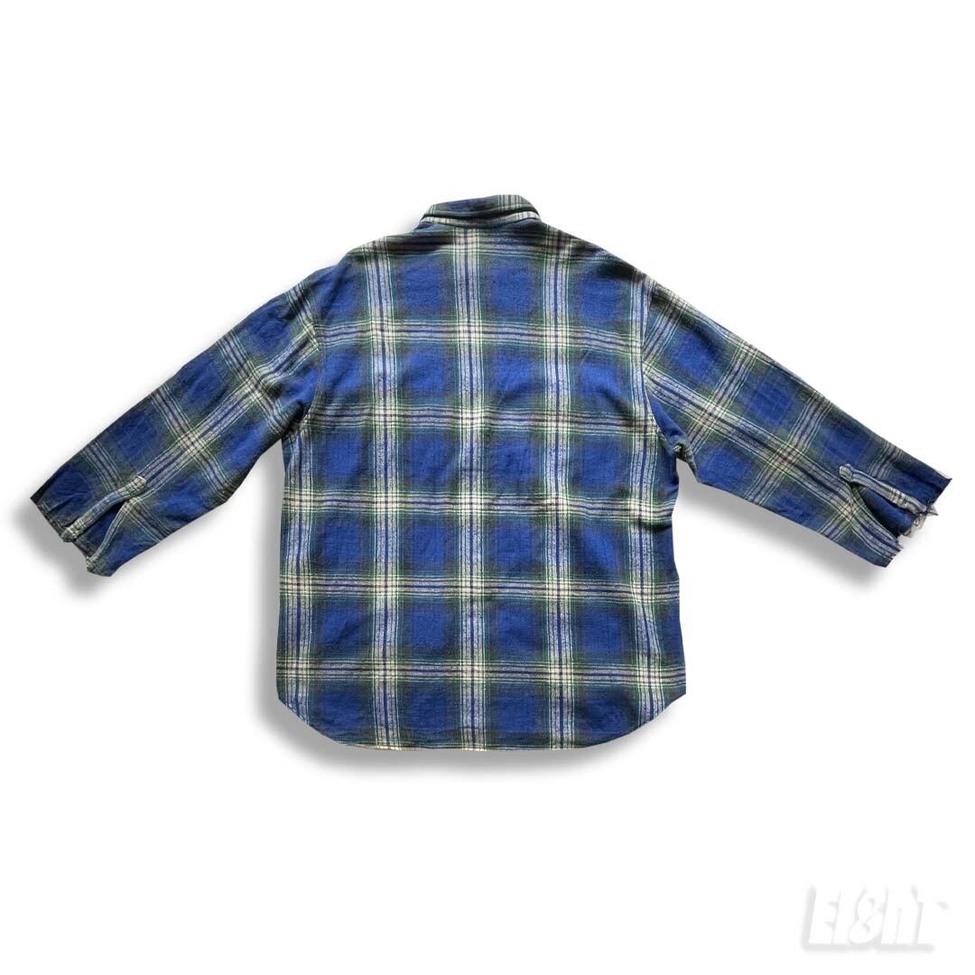 REMAKE PLAID LS SHIRT リメイクシャツ チェックシャツ 青チェック 長袖シャツ 古着シャツ 古着リメイク 古着 デザイナーズシャツ ヨーロッパ古着
