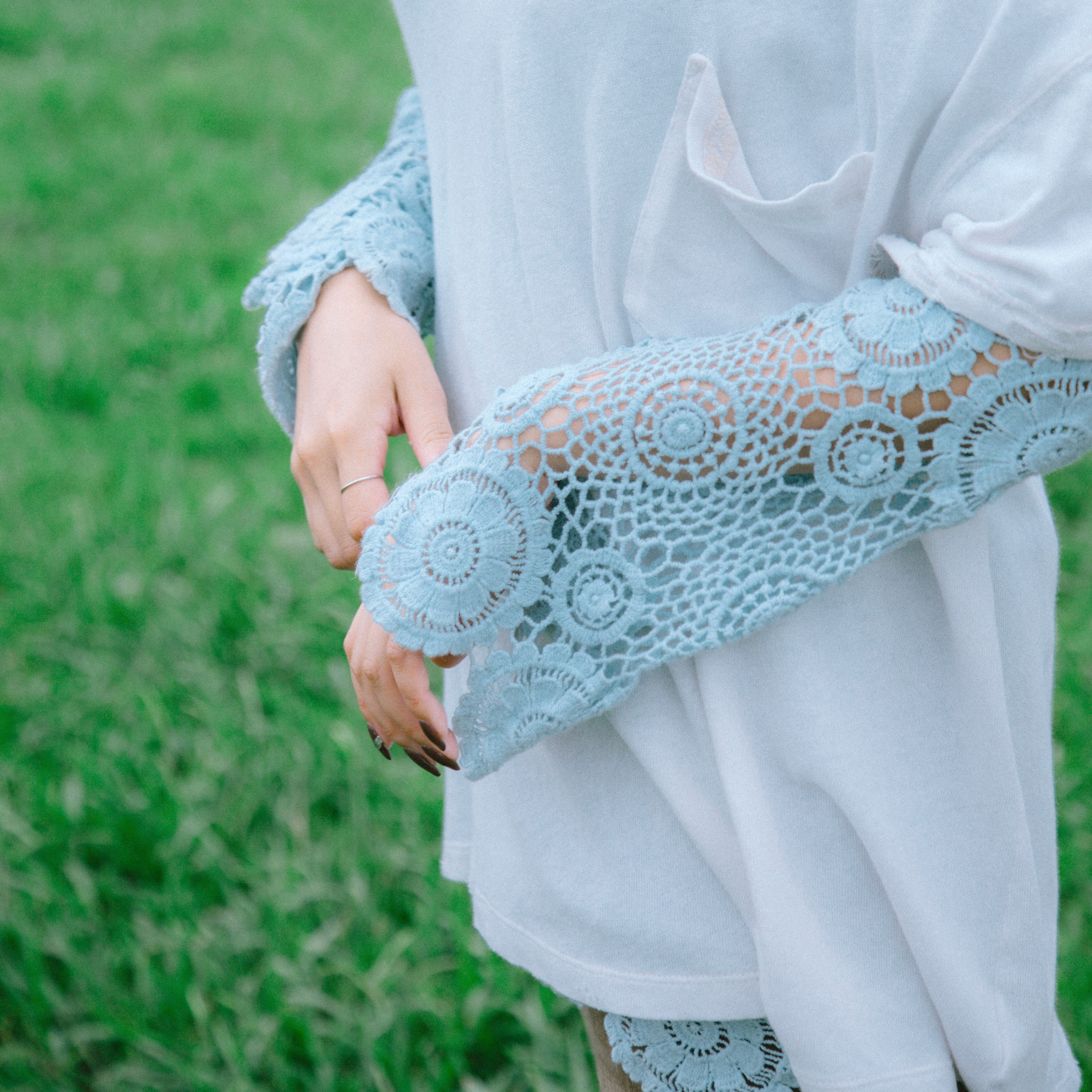 FLOWER LACES TOP crochet クロシェット クロシェ レーストップス レーストップ フレアトップス 古着 水色 ヨーロッパ古着 サマーニット