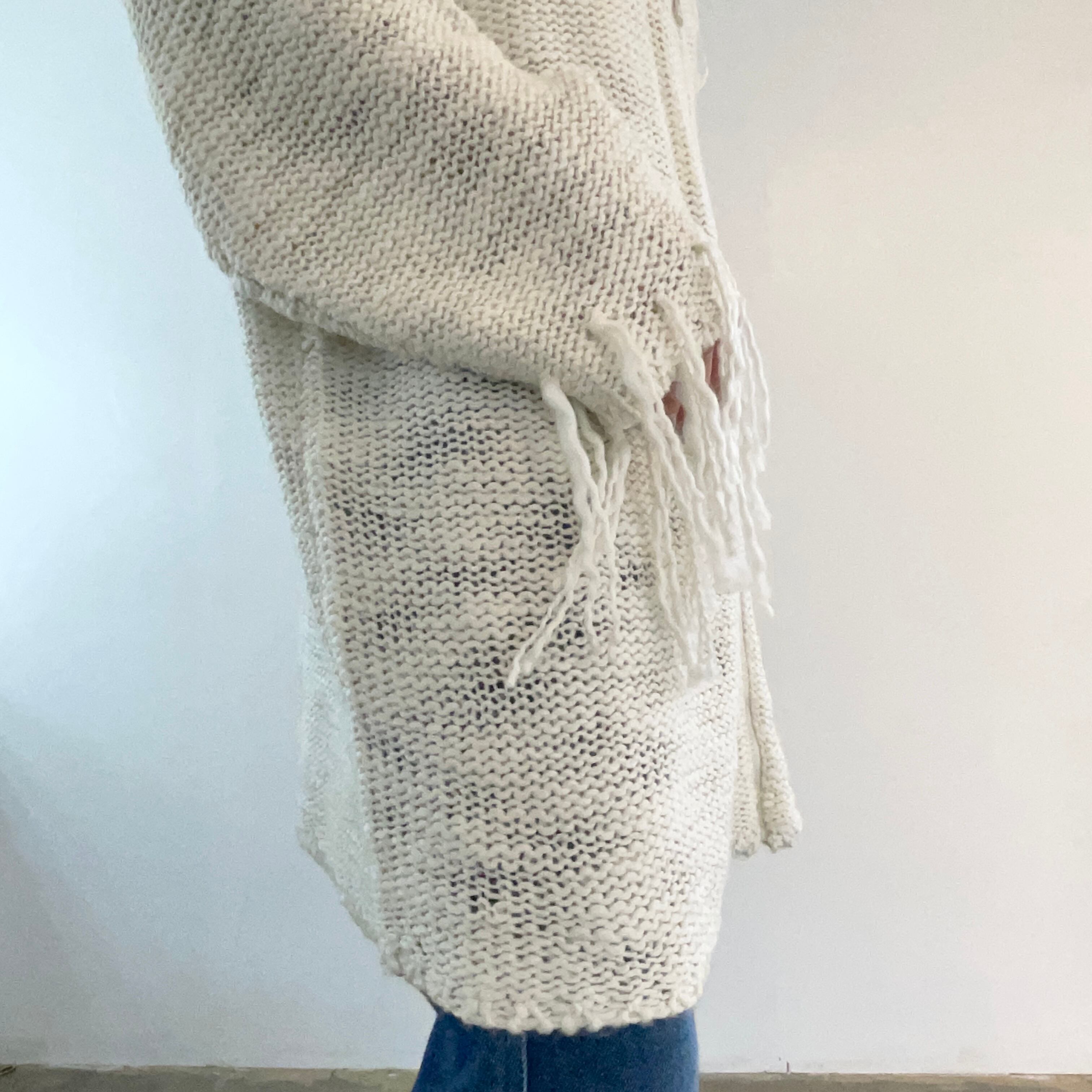 FRINGE KNIT WHITE CARDIGAN フランジ ニット ホワイト カーディガン 白 ジャケット パーカー 古着 ヴィンテージ フランジニット 古着アウター