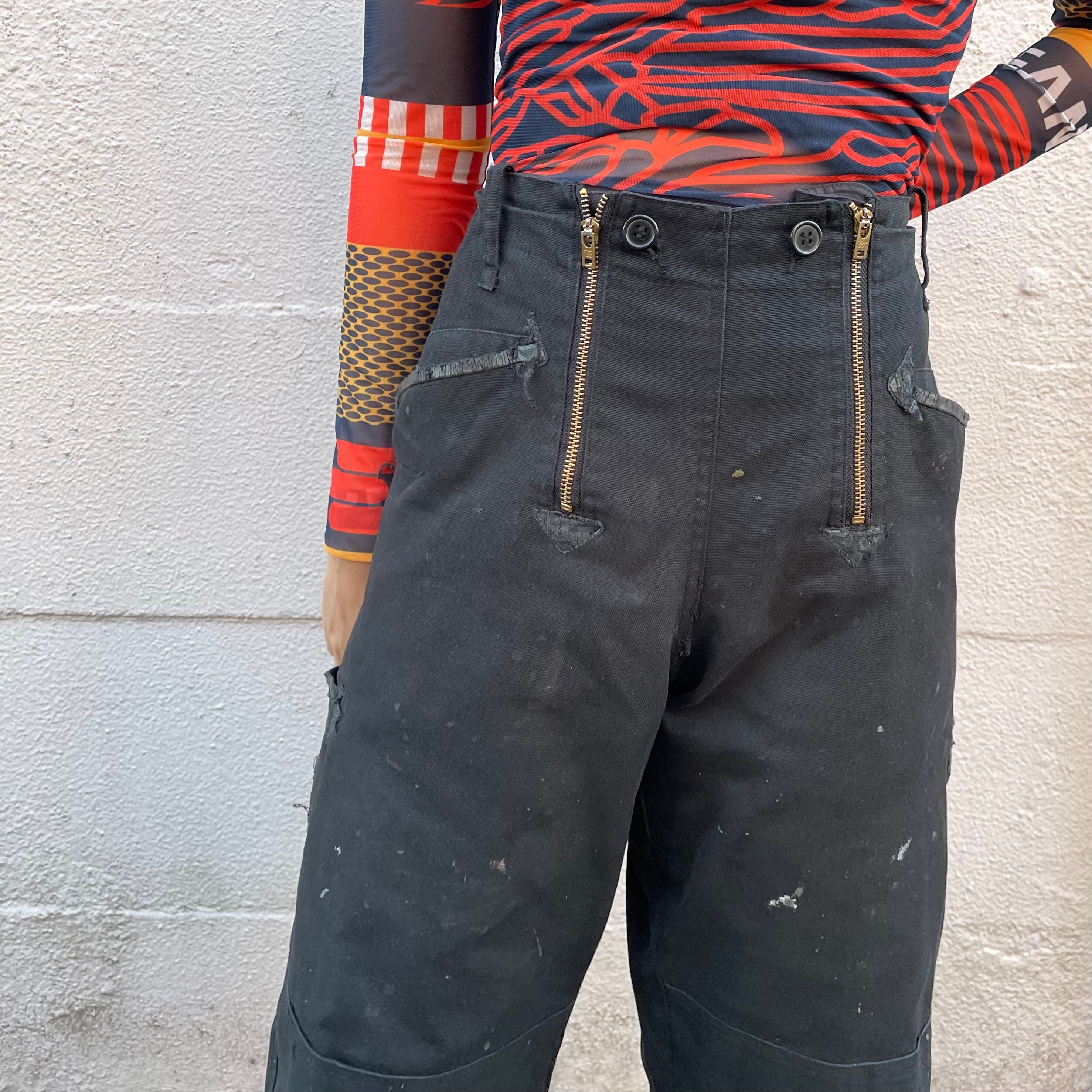 VINTAGE BLACK PAINTED WORK PANTS ヴィンテージ ブラック ワーク ダブルニー パンツ 古着パンツ ペイント ペンキ ヨーロッパ古着 ダメージ カーハート ディッキーズ