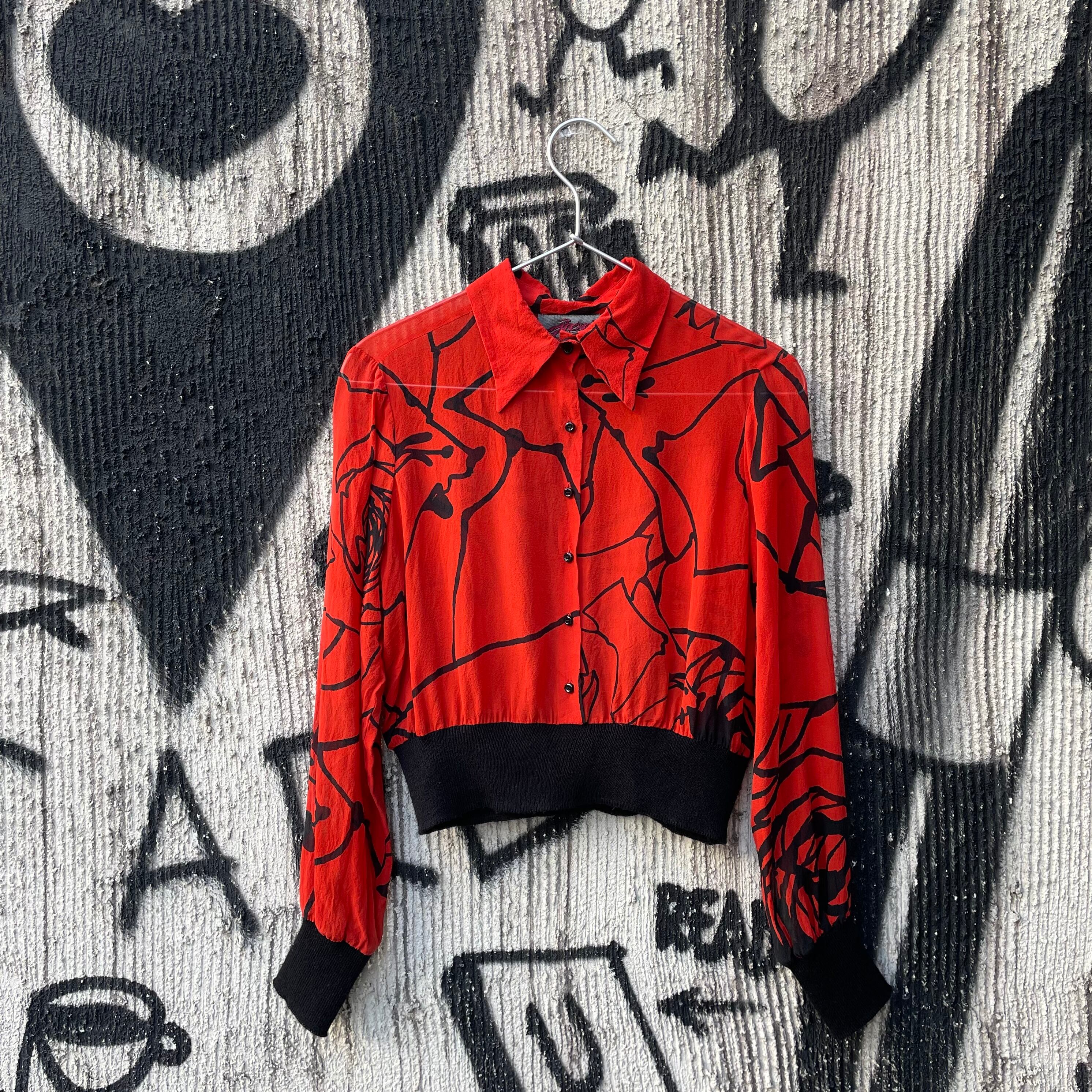 CROPPED SHEER LS SHIRT 赤 クロップド シアーシャツ 赤シャツ ブラウス 古着シャツ 古着ブラウス シースルー ヨーロッパ古着