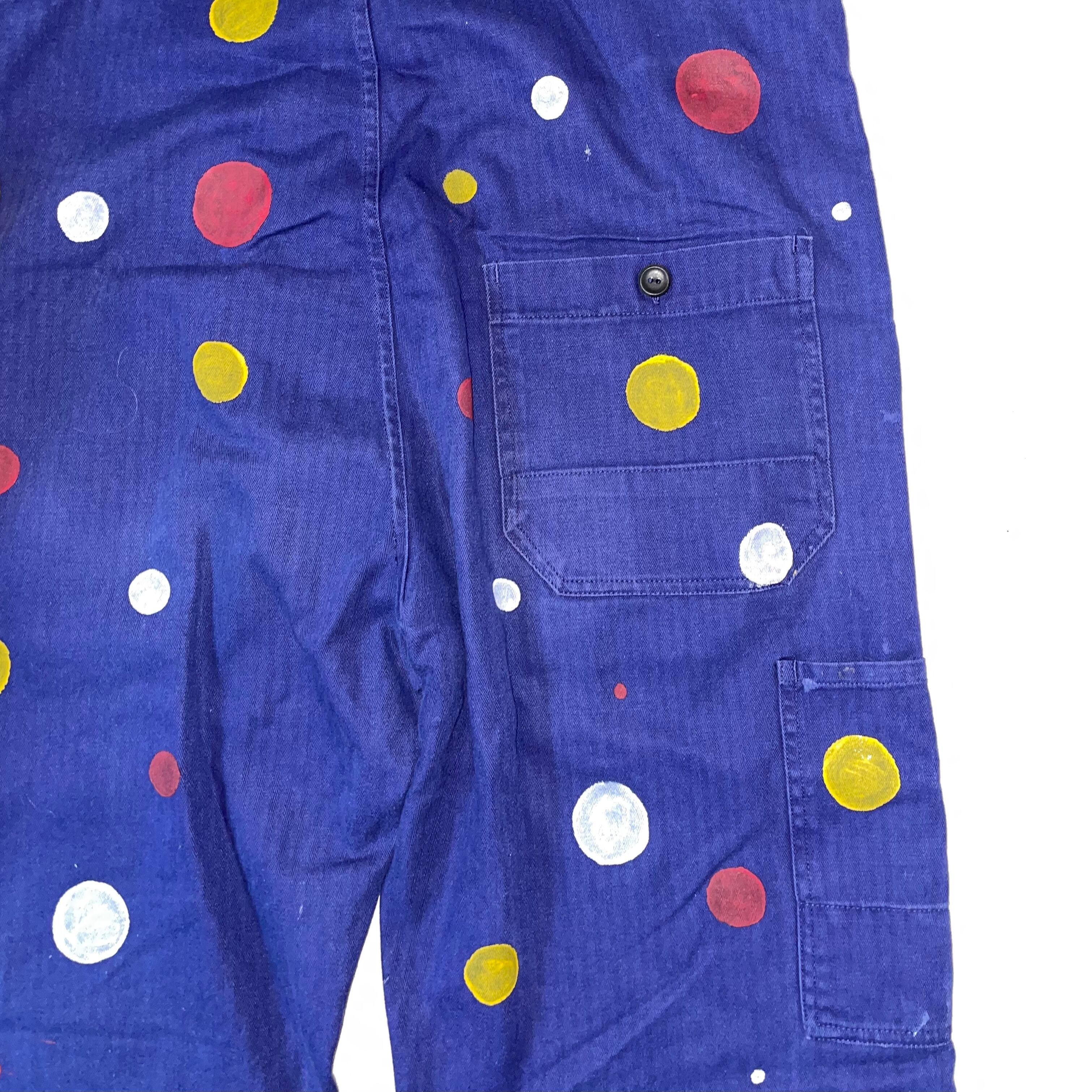 Vintage overall オーバーオール ドット柄 水玉模様 ネイビー ヨーロッパ春 古着 サロペット 古着オーバーオール