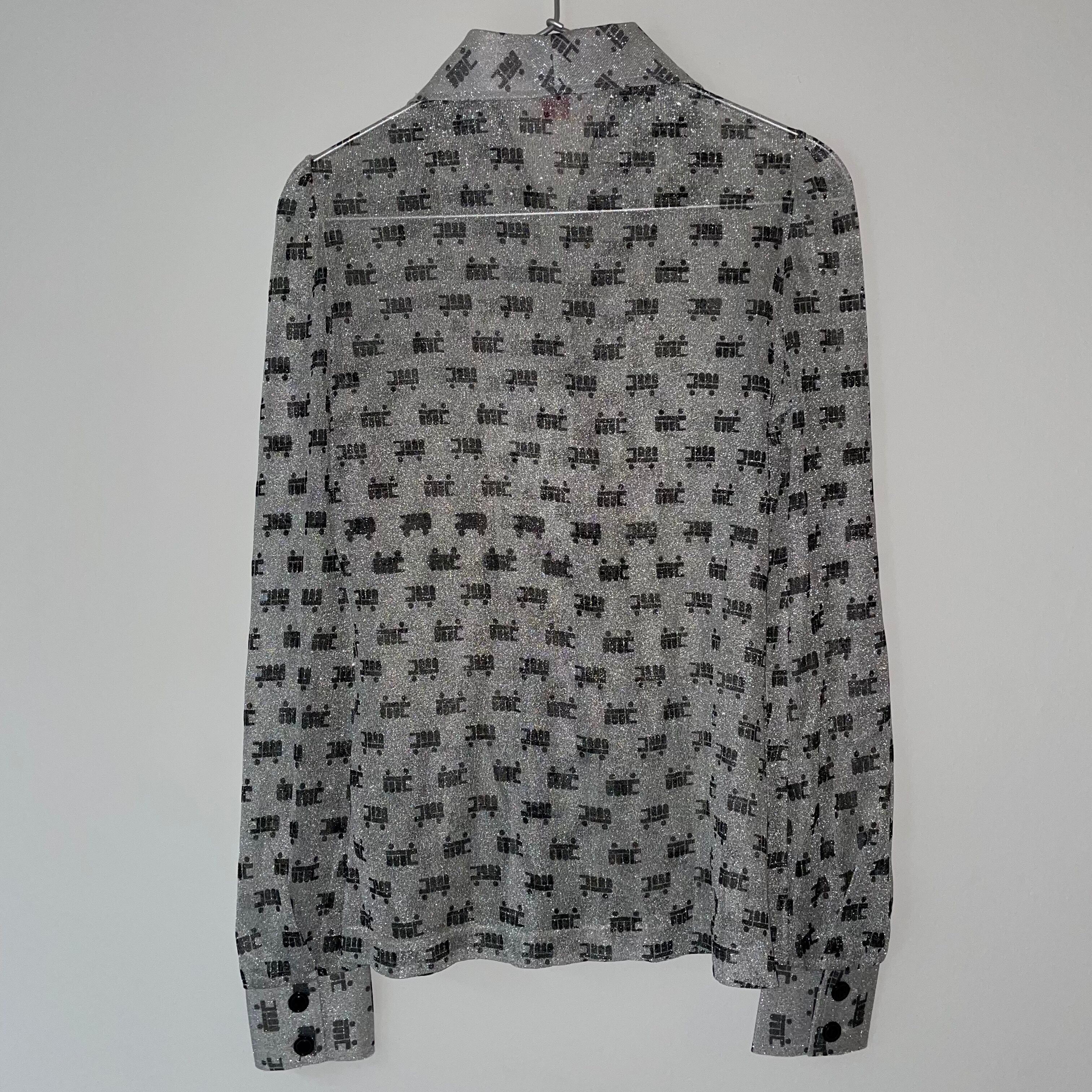 Glitter LS shirt シースルー グリッター シルバー パーティー 70s 古着シャツ 古着