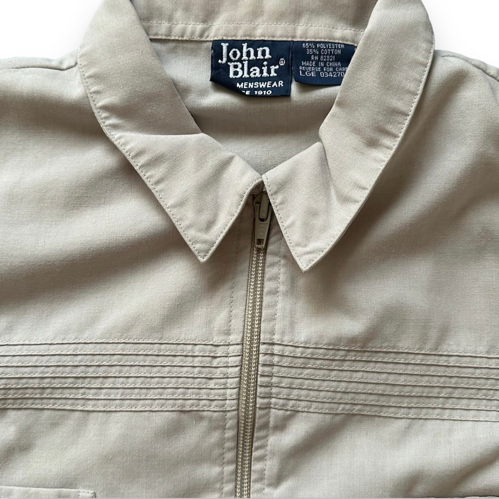 ジップシャツ 古着シャツ リブ 半袖シャツ オフホワイト