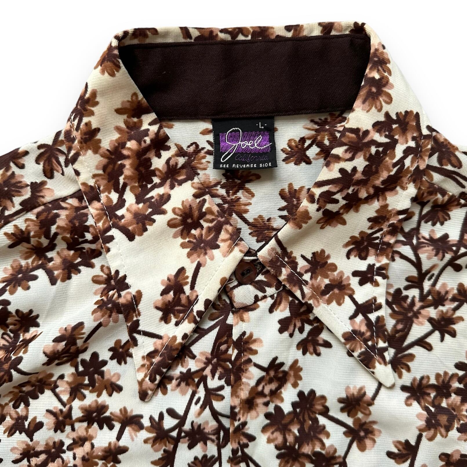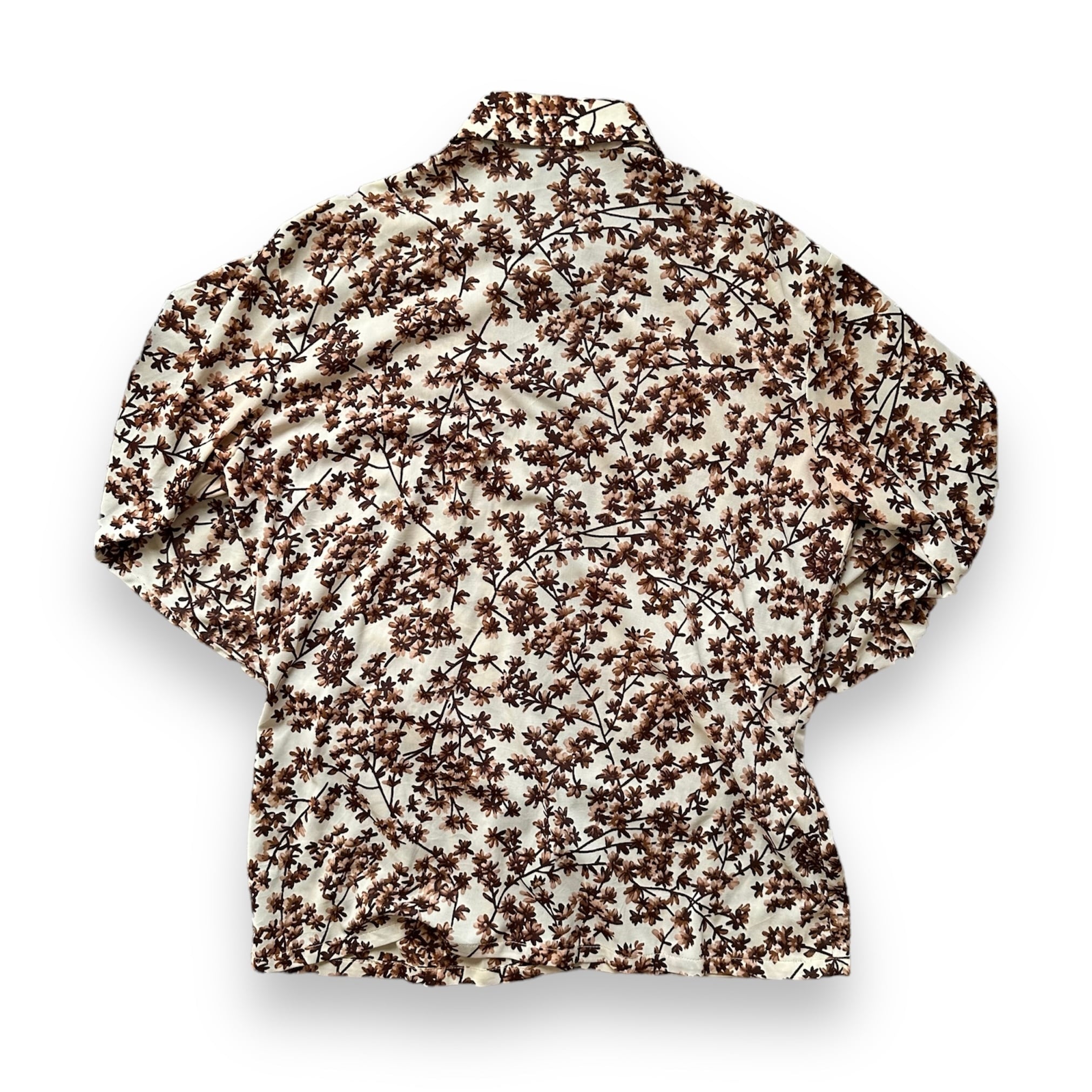 70s ヴィンテージシャツ 長袖シャツ 花柄 ブラウン 茶色